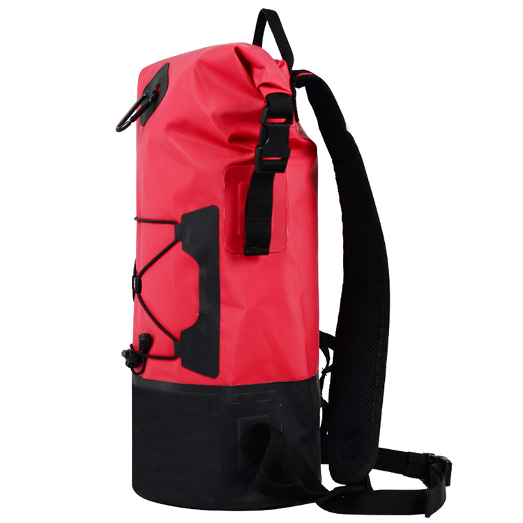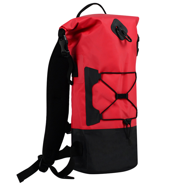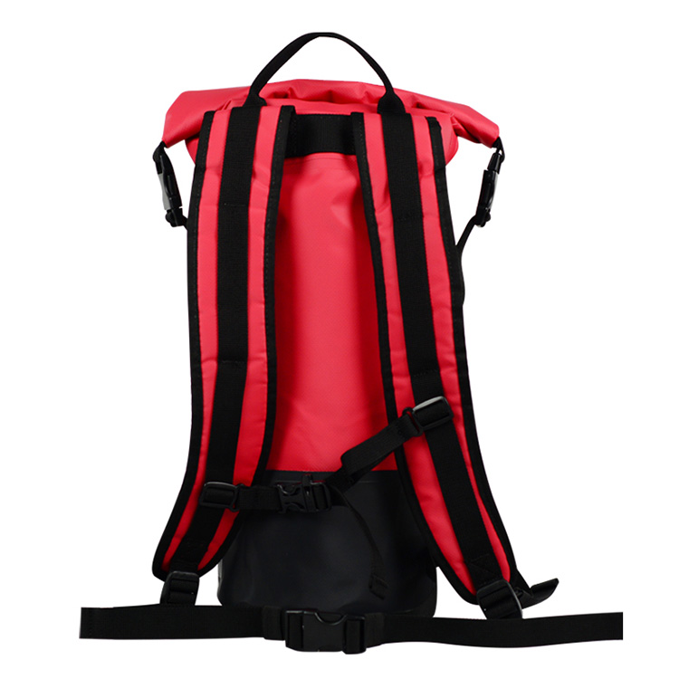 Водоотпорна: Сувата торба е направена од 500D ПВЦ водоотпорен материјал за водоотпорен ранец, да биде флексибилен и издржлив. Ранецот е целосно потопен водоотпорен тест и менувачот или облеката во сува торба е тотално суво и убаво. Може да му верувате на овој сув ранец за време на кајак, кајакарство, летање, лебдечки, кампување, пешачење и кој било друг спорт на отворено. Со wate