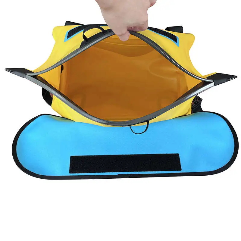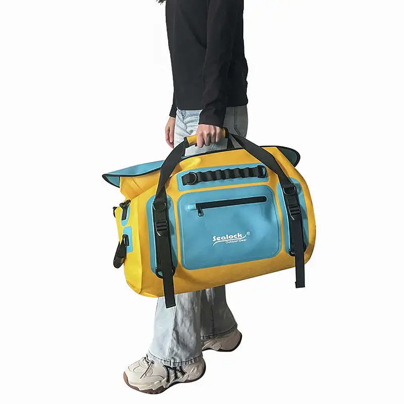 Водоотпорна заштита: Нашата водоотпорна торба за дуфли за кајак е направена од водоотпорна ткаенина TPU, со високи перформанси и издржливост и се изградени за да трае! Сите шевови се заварени со топлина за да се осигурате дека целата ваша опрема останува целосно суво! Тоа е идеална торба за викенд за сите ваши авантури со едрење, кампување, пловење и патувања.